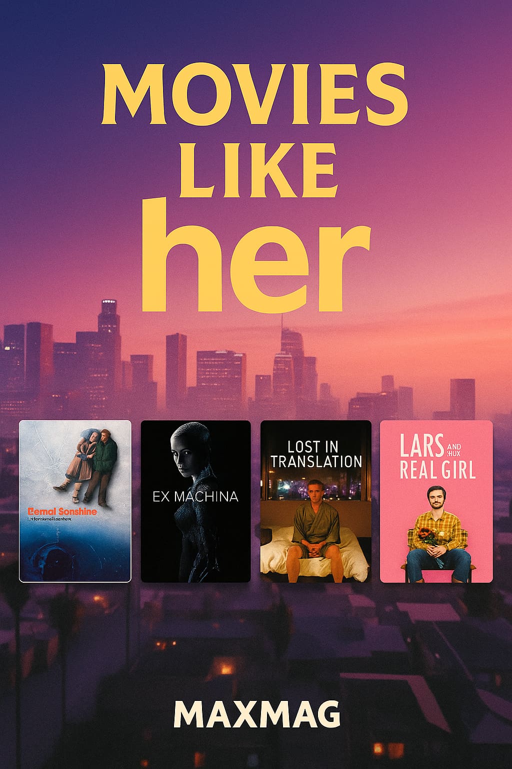 Movies like Her prove that romantic storytelling can thrive inside future-adjacent worlds without turning into action. They let us move between gentle AI companions like I’m Your Man and higher-stakes identity puzzles like Ex Machina without losing the heart. They also make room for urban loneliness pieces like Lost in Translation and memory-driven heartbreakers like Eternal Sunshine of the Spotless Mind so viewers can pick by mood. For deeper reading on how cinema handles technology and feeling see the excellent coverage at BFI and the ongoing essays at AFI. This cluster of digital-age stories shows that connection is a decision even when software helps. Whether you want the dark weirdness of Under the Skin, the satire of The Lobster or the comfort of Lars and the Real Girl the seed film’s DNA is obvious. That is why movies like Her keep inspiring lists, rewatches and think-pieces. They are love stories about becoming more alive.