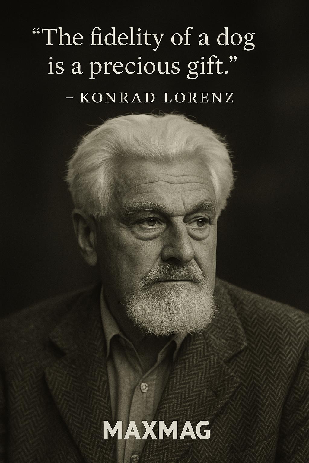 Lorenz’s popular writings reveal a deep emotional attachment to his animals, especially to dogs and geese, whom he treated as individual personalities rather than interchangeable specimens. In books like Man Meets Dog, he wrote of canine loyalty and companionship in ways that blurred the boundary between scientific observation and affection.