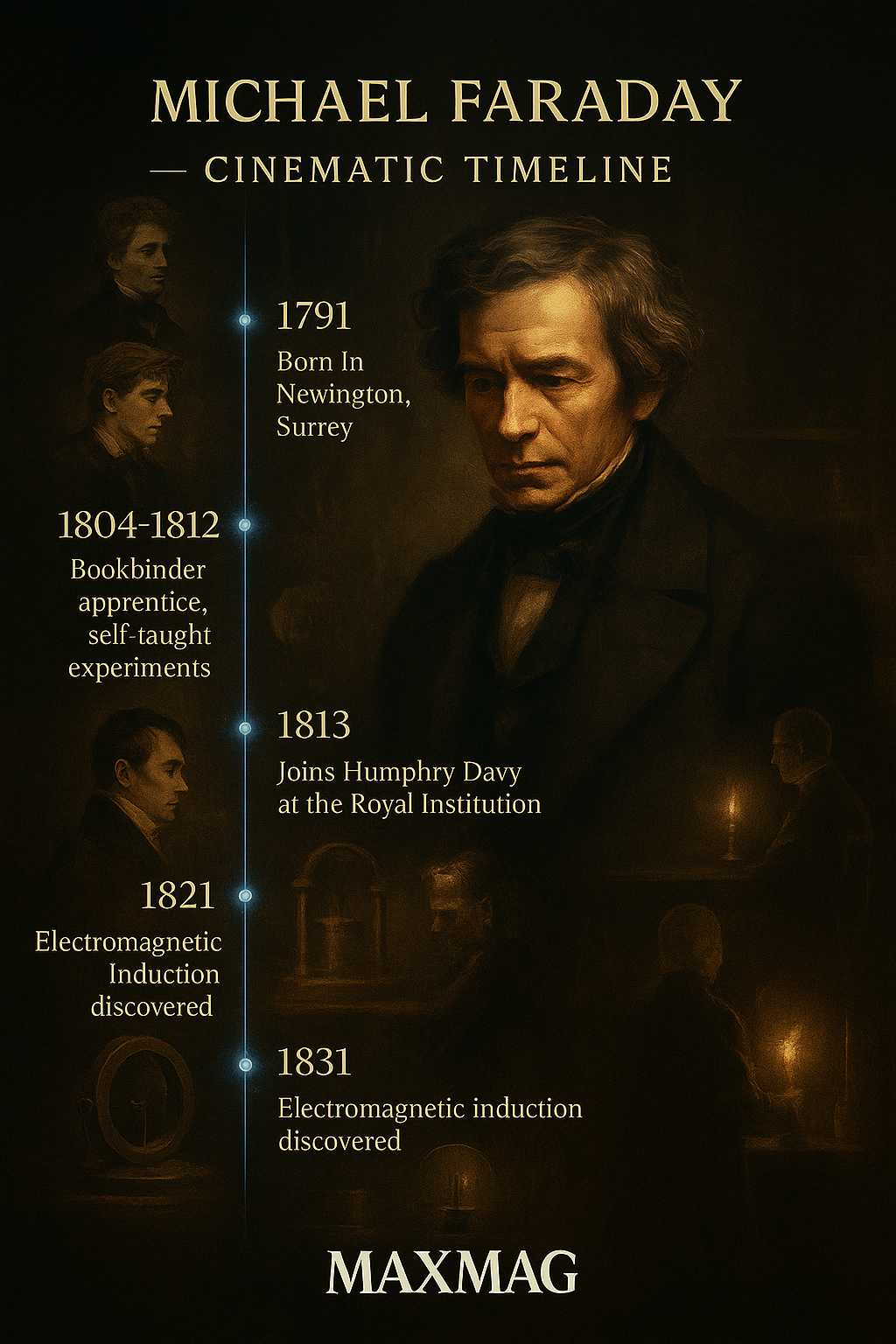He never attended university and rarely used higher mathematics. He was sometimes patronised as a brilliant laboratory hand. Yet by the time he died in 1867, Faraday had become the Royal Institution’s most important working scientist and one of the 19th century’s most public intellectuals. His lectures could turn a candle, a magnet, or a coil of wire into a small drama about nature’s hidden rules. This Michael Faraday biography follows that drama, from the hard edge of his childhood to the experiments that lit up the electrical age.