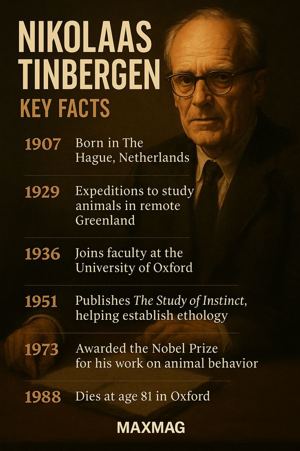 - Who: Dutch zoologist and ethology pioneer, co-founder of the modern scientific study of animal behaviour.